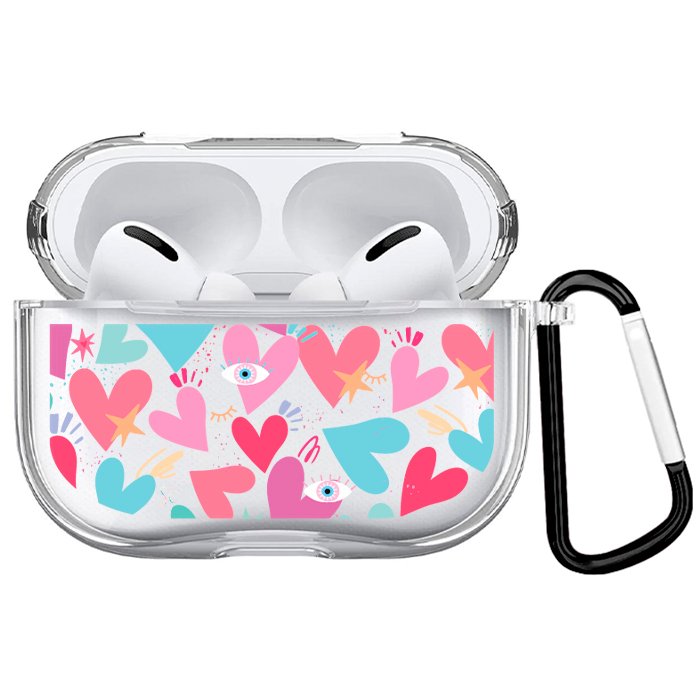 Case Audífonos Transparente Corazones 2